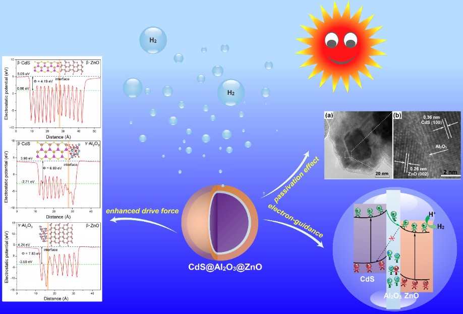 该研究成果以“Ultrathin Al2O3bridging layer between CdS and ZnO boosting photocatalytic hydrogen production”为题发表在材料领域知名期刊Journal of Materials Chemistry A上(影响因子10.773),论文第一作者为电气学院博士生马丹丹,通讯作者为电气学院石建稳副教授,论文的国际合作者为澳大利亚昆士兰大学王连洲教授,麻豆在线