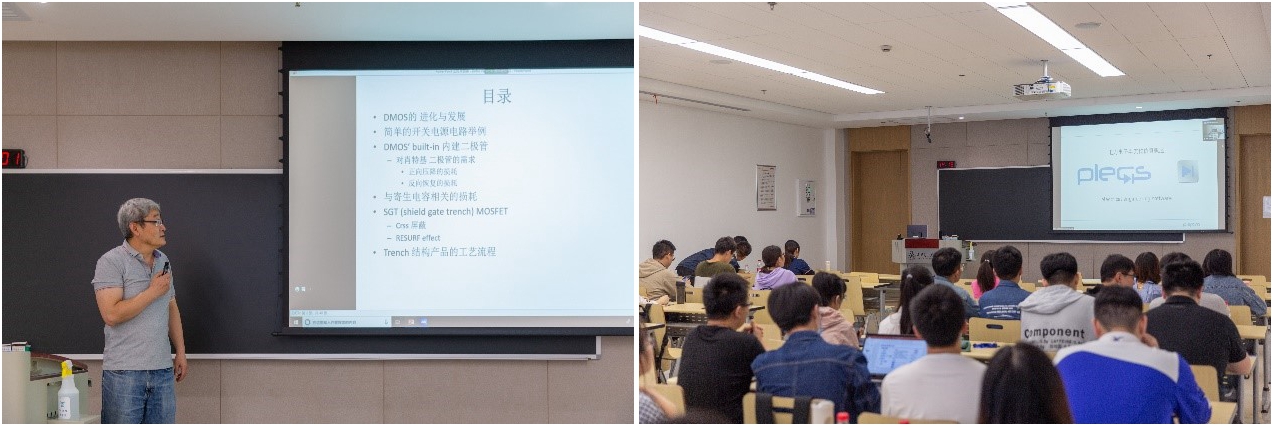 第二组报告由龙腾半导体股份有限公司CTO李铁生介绍“电源管理电路中的大功率 MOSFET”,由 Plexim有限公司应用工程师罗岷介绍 “电力电子半实物仿真技术概述”。两场报告分别就功率半导体器件加工制造工艺以及电力电子半实物仿真做了详细介绍,增加了与会人员对电力电子产业前沿的认识与了解。