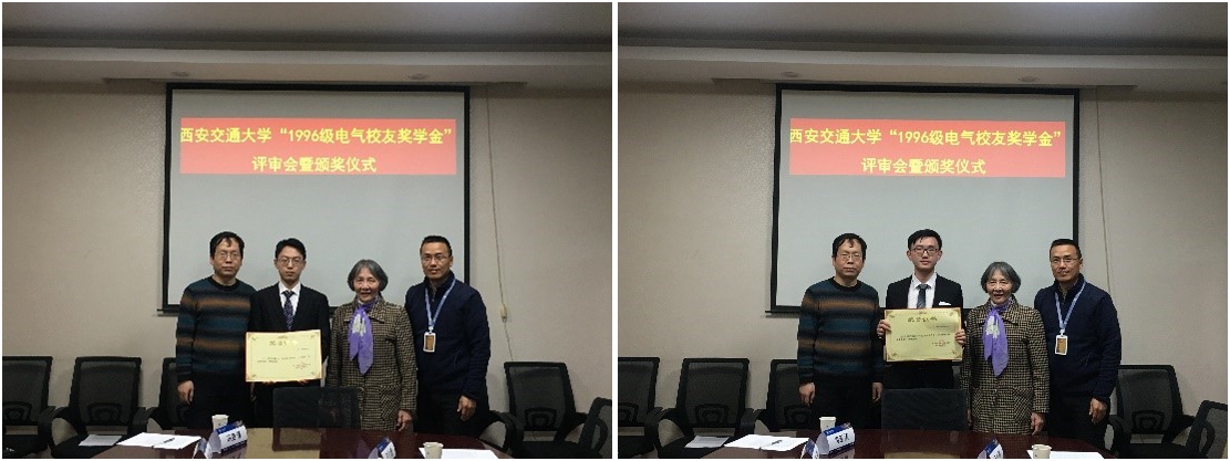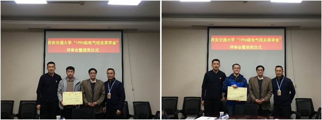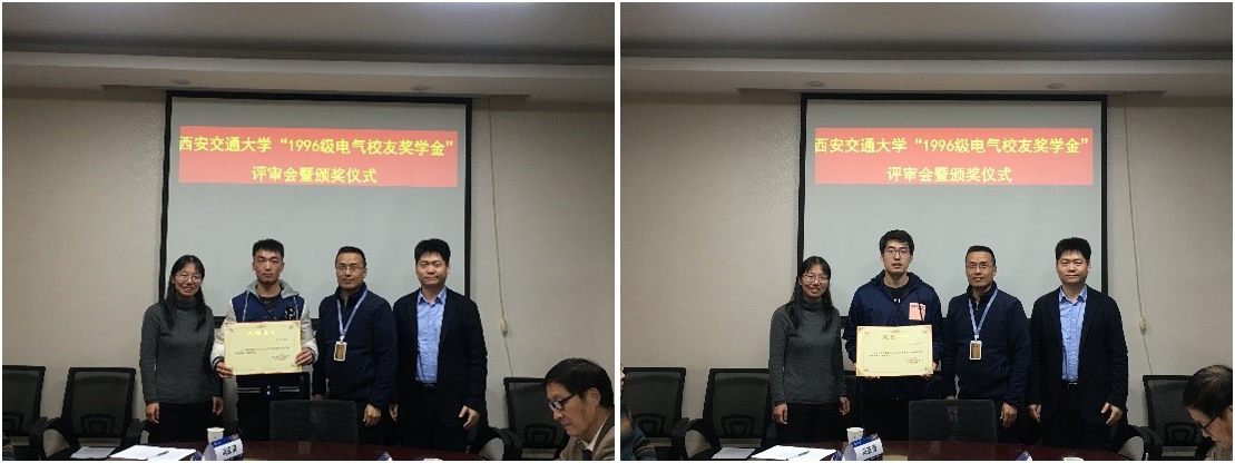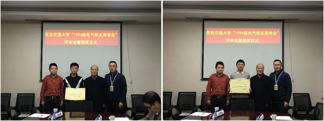 “1996级电气校友奖学金”是由西安交大电气学院1996级校友集体捐赠创立,每年评选一次,以鼓励电气学院品行端正、成绩优异的学子,目前奖励金额为每人4000元。
