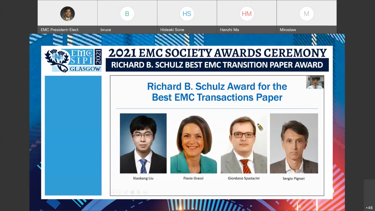 IEEE TEMC Richard B. Schulz最佳论文奖是国际电磁兼容领域学术论文的最高荣誉,以IEEE Life Fellow、国际著名科学家Richard B. Schulz博士(1920-1998)的名字命名,每年从IEEE EMCS所属旗舰期刊IEEE TEMC上一年度正式出版的数百篇论文中,仅仅评选出最佳论文奖、最佳论文提名奖各1篇,受奖率仅约千分之三。