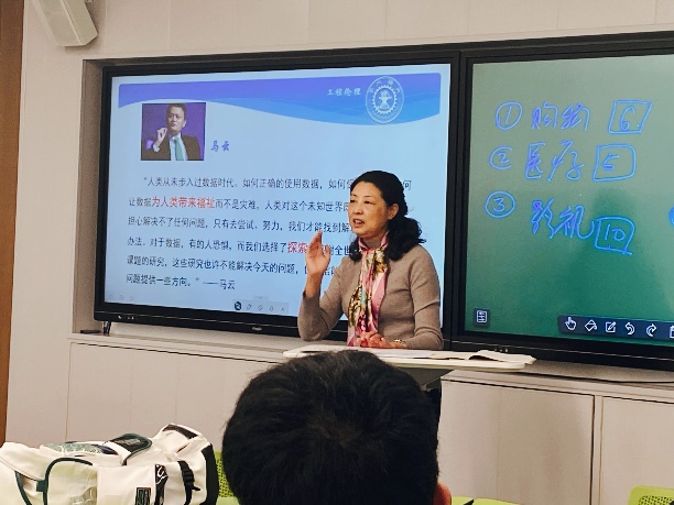以徐正红老师的授课情况为例,徐老师通过一系列生动详实的案例为学生讲解互联网时代的工程伦理问题。在详实了解的基础上,徐老师将讨论问题分为“互联网+购物”、“互联网+医疗”、“互联网+影视”、“互联网+餐饮”、“互联网+交通”和“互联网+教育”六个方面供学生讨论分享。其中,穆圣泉同学通过阐释“互联网+医疗”中存在的伦理问题,提出了完善相关法律法规、提高行业道德规范及增强自我防范意识等措施来解决诸如新冠疫情中发生的一系列医疗伦理问题。刘婧同学通过对“大数据杀熟”等问题的分析,提出国家、平台和消费者都应加强伦理意识和责任感。