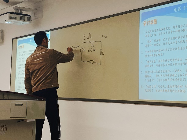 同时,该课程培养方案中的观影学习环节也独具特色。课程选取电影《电流之战》,该电影讲述了19世纪和20世纪的两位发明家爱迪生与威斯汀豪斯基于电动机使用直流电或交流电而产生的一系列伦理争辩。学生们基于伦理学的五大指标层,即生命原则、善良原则、诚信原则、公平公正原则和自由原则,对电影《电流之战》的相关剧情进行了热烈的讨论。在分组讨论环节,何旭博同学通过分析电影剧情,提出电流之战中的一系列实践违背了工程伦理的不伤害原则、公开公正原则和诚实守信原则等;胡铭遥同学通过分析电流之战中交流电胜于直流电的原因,深入阐述了利益最大原则在工程伦理情境中的运用。徐正红老师认为,选取专业契合度较高的电影不仅能够帮助学生更好地理解工程伦理问题,而且能够培养学生的历史思维与辩证思维,促使学生学会根据实际情况选择更适合和恰当的技术方法,以此推动社会发展。
