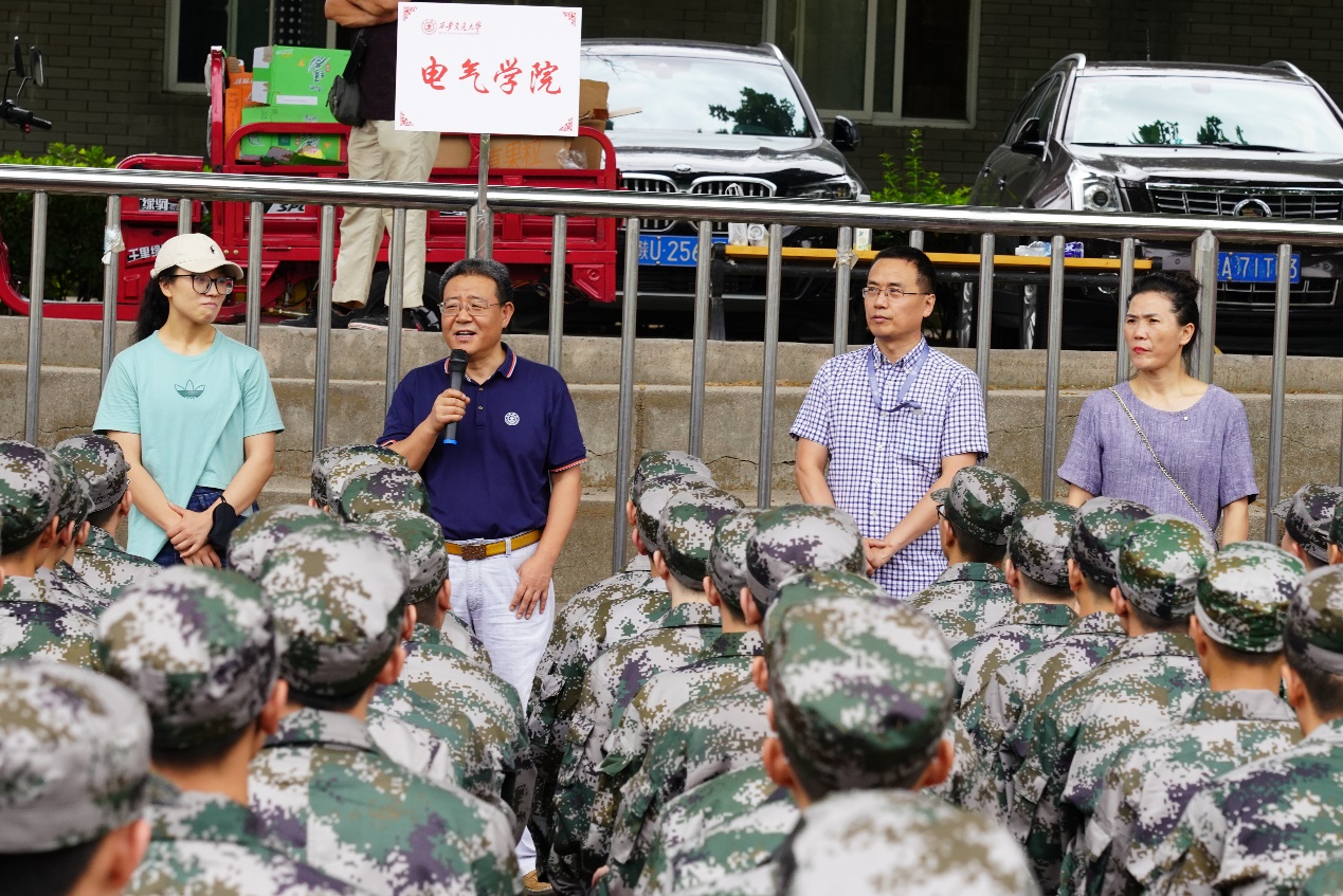 梁得亮书记代表学院感谢参训干部、承训官兵的辛勤付出。并对在炎炎烈日,酷暑高温下坚持训练的同学们致以亲切的慰问。梁得亮书记表示,自己十分欣慰能在校园中看到这样一群意气风发、精神抖擞的新生加入交大加入电气的大家庭。他期望同学们再接再厉,充分发扬交大人艰苦奋斗,永不言败的精神,以饱满的热情迎接各种挑战,以优异的成绩回馈自己、回馈亲朋、回馈学校。