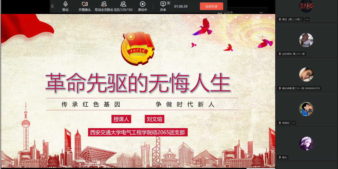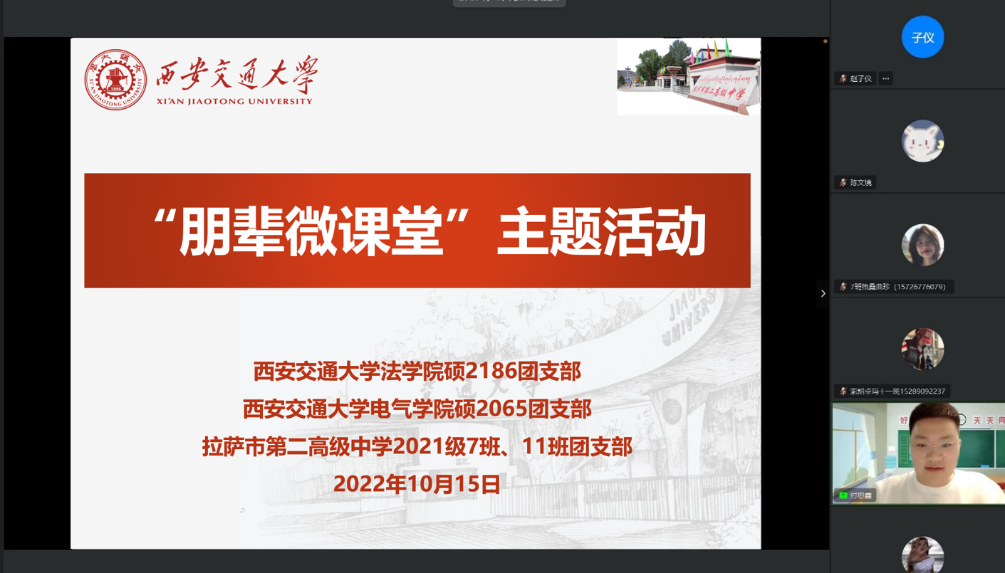 电气学院硕2065团支部、法学院硕2186团支部联合交大心理学协会与西藏拉萨市第二高级中学的团员青年们开展了线上交流分享会,为同学们带来了一次干货满满的“朋辈微课堂”主题活动。