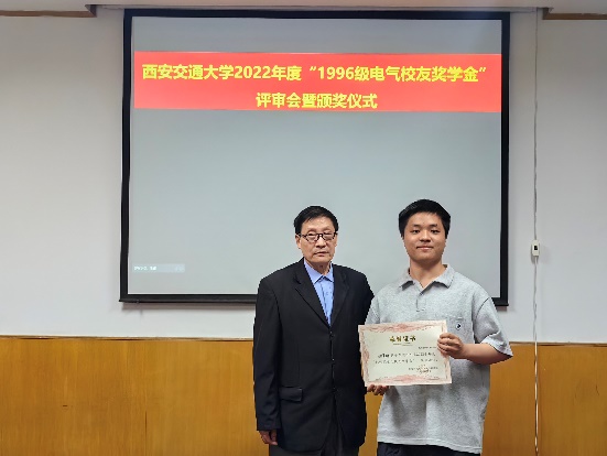 “1996级电气校友奖学金”由电气学院1996级校友集体捐赠和募集,该奖学金每年评选一次,今年是第三次颁发。用以鼓励电气学院品行端正、成绩优秀的学生,其奖励标准为本科生每人3000元,本奖学金与国家奖学金、其他社会奖学金不可兼得。