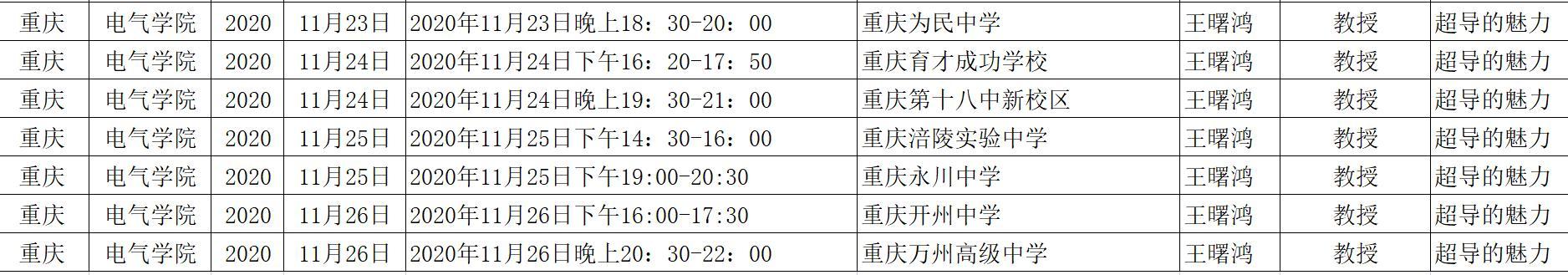 电工电子国家级实验教学中心王曙鸿教授,先后走进重庆为民中学、重庆育才成功学校、重庆第十八中新校区、重庆涪陵实验中学、重庆永川中学、重庆开州中学、重庆万州高级中学等7所学校开展“教授进中学科普讲座”活动。分别为师生带来7场题为《超导的魅力》的报告。鼓励广大学子积极探索科学的奥秘,发现科学之美。