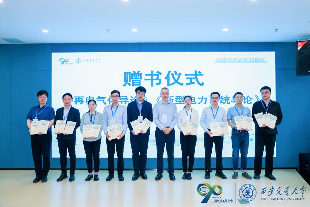 在开幕式赠书仪式环节,姚强向学会高校会员中心代表赠送由学会牵头组织编写,学会理事长舒印彪院士担任主编的《再电气化导论》和《新型电力系统导论》,书中重点阐述了新型电力系统的科学内涵、演进路径,重大核心技术和再电气化的理论体系、战略路径、关键技术,具有战略性、前瞻性、系统性,可以作为专业技术人员的培训教材。