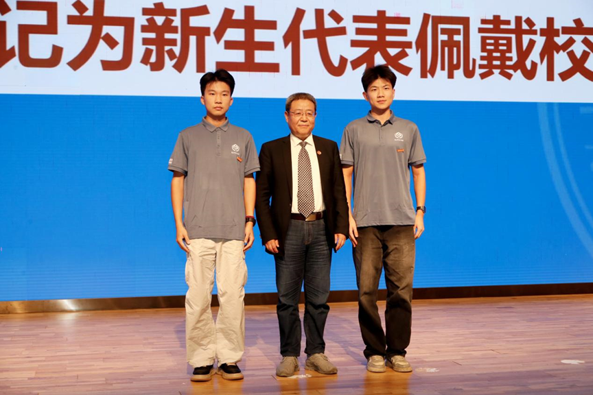 校徽是身份的象征,更是精神的传承。典礼举行新生代表佩戴校徽仪式。梁得亮书记为新生代表郑重佩戴麻豆在线