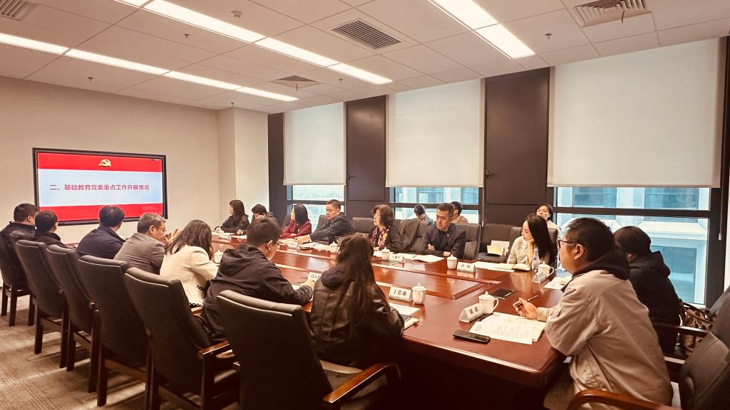 基础教育党委副书记杜少英详细介绍了基础教育党委基本情况,以及交大基础教育的发展现状和办学特色,她表示,在学校党委的正确领导下,基础教育党委充分发挥政治核心作用,不断推进高质量党建与基础教育高质量发展,圆满完成了教育教学和主题教育的各项要求,把交大的基础教育的事业又进一步推向了一个新的高度。