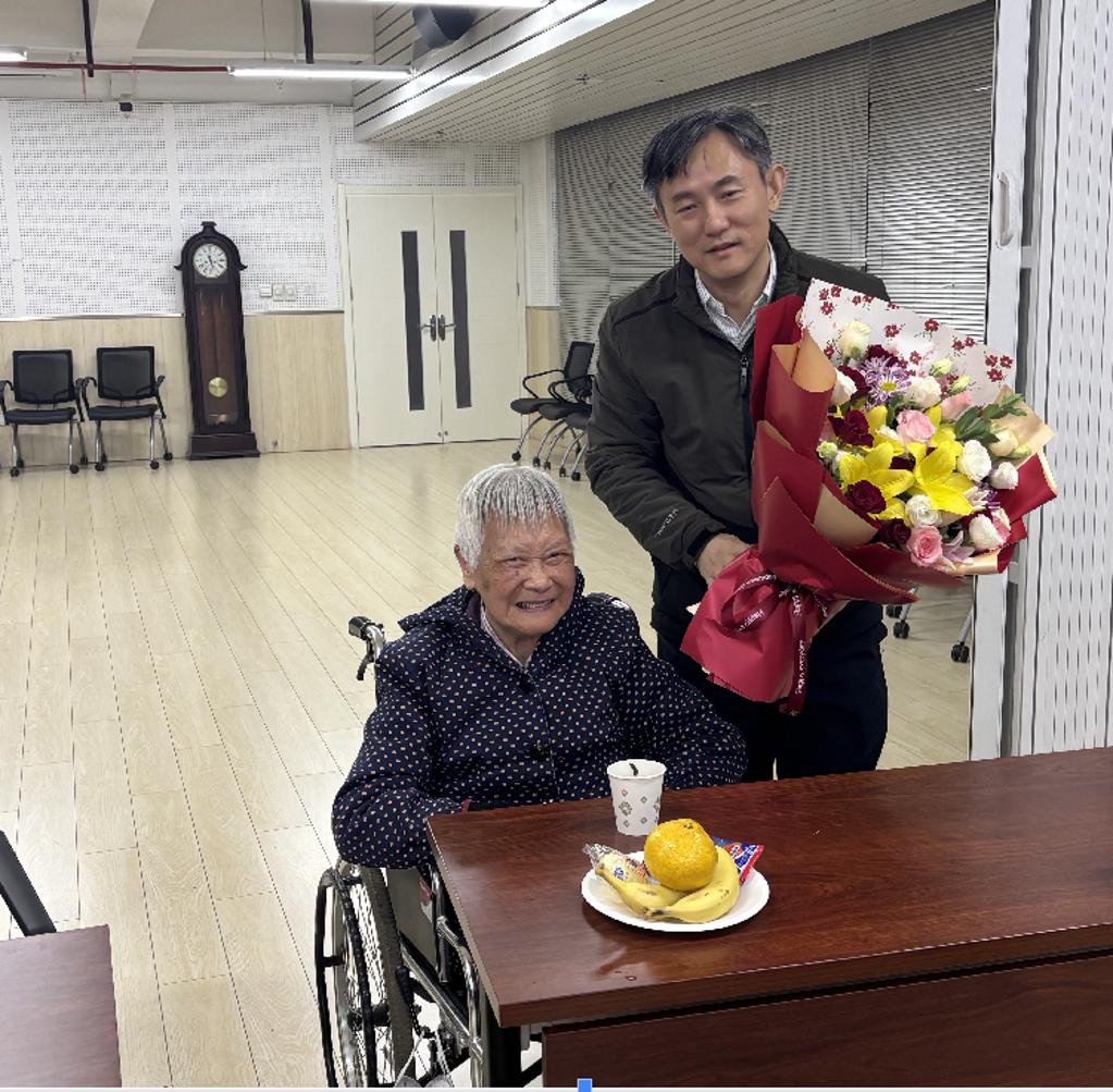 尊师重教,感恩传承。在温馨感人的氛围中,会场进入了向寿星代表致敬献花的环节。学院领导们分别向今年恰逢七十、八十、九十整寿的离退休教工代表们献上了精心准备的鲜花。绚丽的鲜花映衬着老同志们幸福的笑容,现场响起了阵阵热烈的掌声,表达着对前辈们崇高的敬意和美好的祝福。