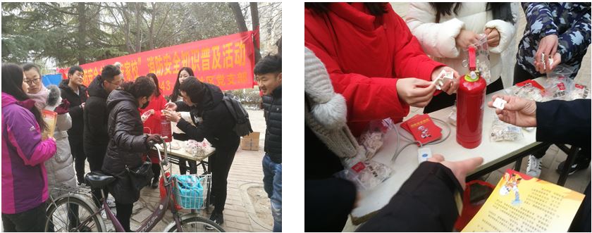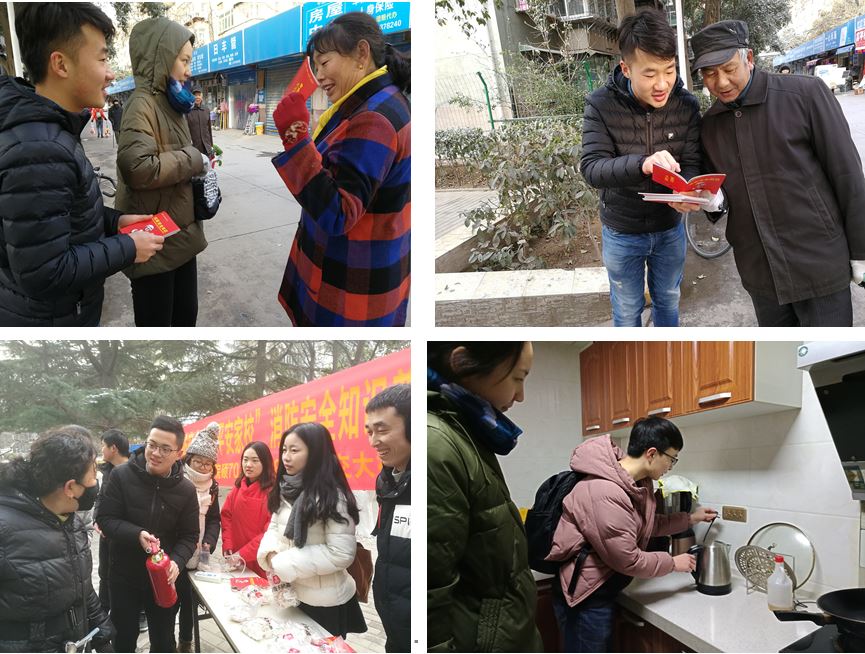 西安交大家属区为老旧小区,且有大量退休老人居住在内,冬季安全用火、用电和用气常识,以及如何预防火灾、遇到紧急情况如何处理、如何报警、火场如何进行逃生自救等知识亟待普及。此次活动包含消防安全知识讲解、安全手册及防火用具发放、入户排查隐患等环节。在活动中,硕7047、硕8043党员和积极分子就消防安全常识、家庭防火、车辆防火以及防火逃生自救等方面对社区居民进行了讲解。通过讲解,社区群众对消防安全知识有了更深刻的认识。支部成员同时现场指导如何使用干粉灭火器,并发放安全手册、插座安全保护套等防火用具。为发挥所学专长,支部成员入户走访,查找家庭常见安全隐患,并对居民的消防安全问题进行了解答。