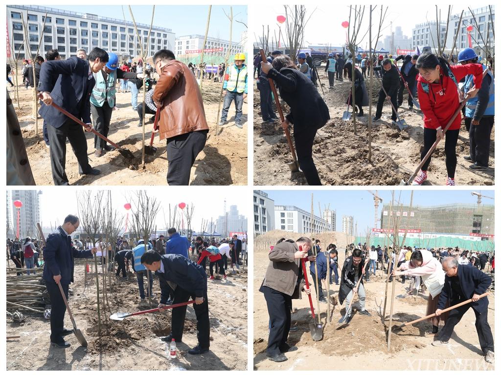在催人奋进的乐声中,植树活动忙碌而有序地进行着,大家争先恐后地种下一颗又一颗苗木,不到一个小时,场地上已经遍植新绿。