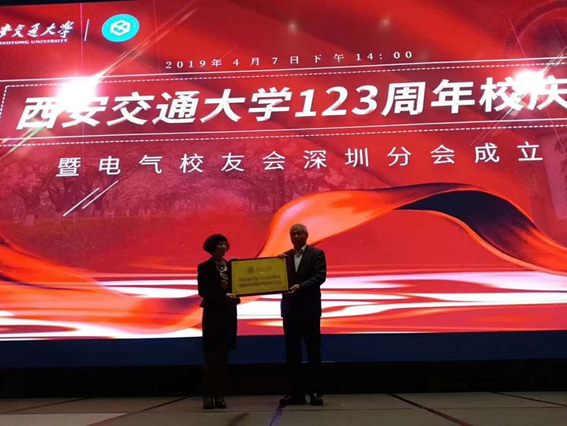 西安交大校友关系部黄浩翔老师代表学校宣读了学校的批复,西安交大电气校友会会长王建华教授为深圳分会授牌。