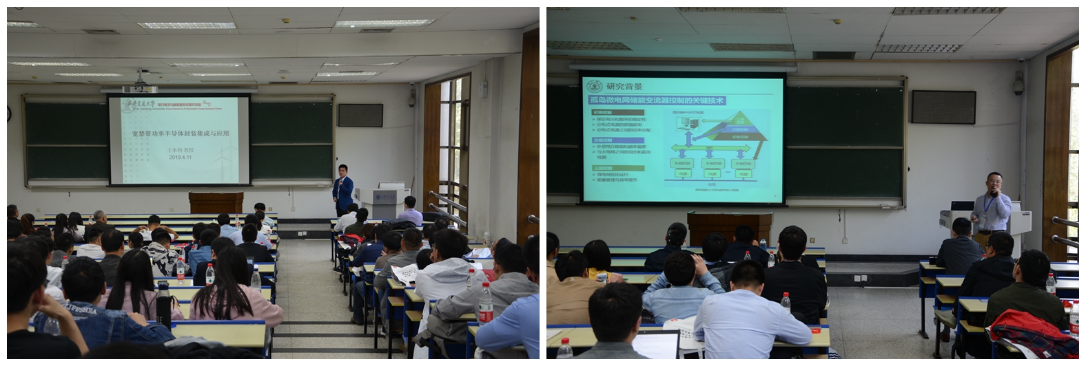电力电子与新能源技术研究中心王来利教授做 “宽禁带功率半导体封装集成与应用”的报告,刘增副教授做“微网储能变流器无线并联控制技术”的报告,这两场报告内容新颖、专业性强,现场座无虚席。