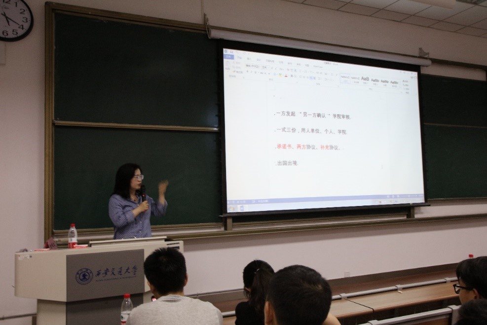 辅导员李茜老师分析了2018和2019届毕业生就业数据,就毕业注意事项和就业要点做了详细讲解。针对目前就业形势,她强调,同学们在择业中不能只顾闷头准备简历,还要关注经济形势和企业招聘政策的变化,特别是有意前往三资企业的同学,要格外注意国际贸易情势变化;另外,在择业中应端正态度,妥善保管就业推荐表,小心谨慎面对三方协议,不要轻信未经学院审核的招聘途径。