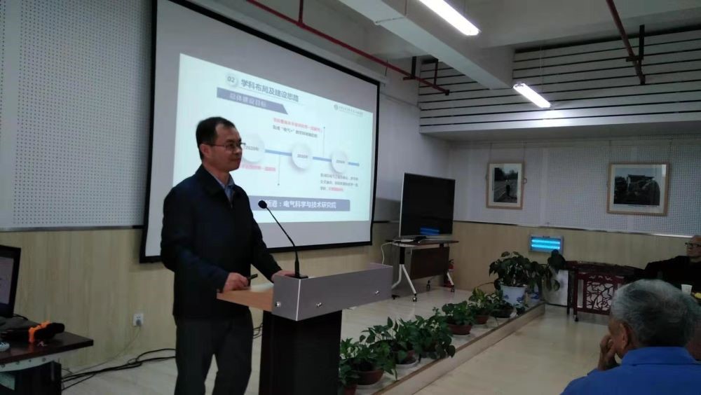 李盛涛常务副院长向各位老师汇报了目前电气学科的概况及创新港发展规划,他表示,学院这些年取得的成绩离不开全体教职工的奋力拼搏与默默奉献,离不开在座各位老师们的关心与支持,他代表学院向各位离退休教职工表示衷心的感谢。