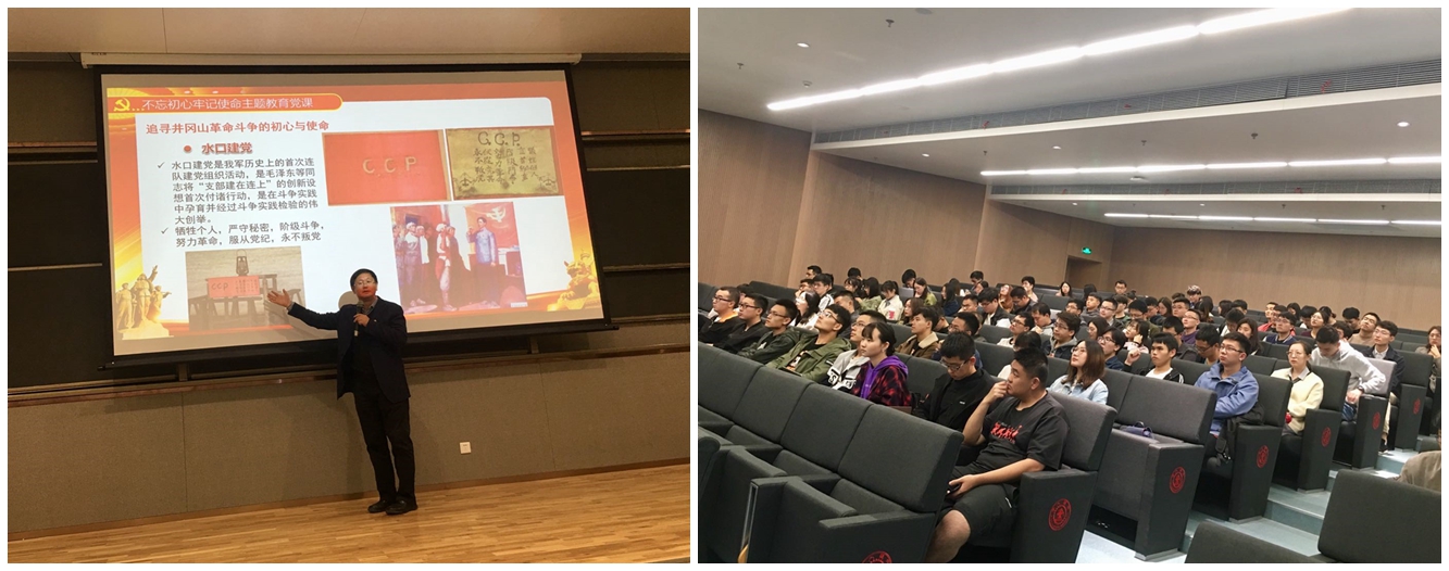 在创新港开展“不忘初心、牢记使命”主题教育专题学习,院党委书记成永红为2019级新生带来题为《守初心、担使命》的专题党课,全体2019级新生党员参加,分党委副书记宋杰主持本次学习会。