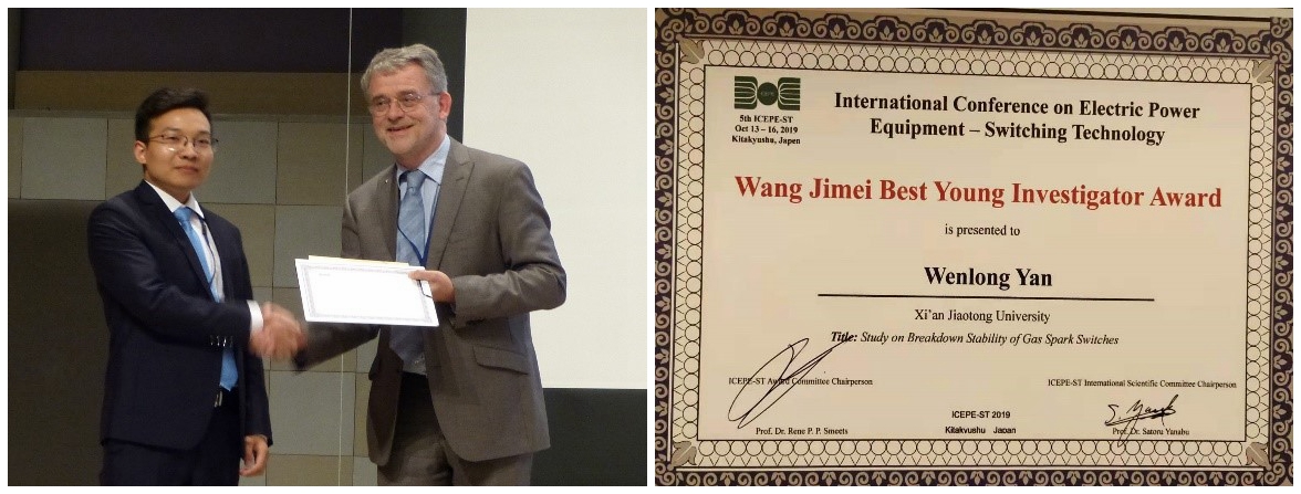 博士研究生闫文龙会上作了题为“Study on Breakdown Stability of Gas Spark Switches”的学术报告,并荣获“王季梅最佳青年奖”(Wang Jimei Best Young Investigator Award)。