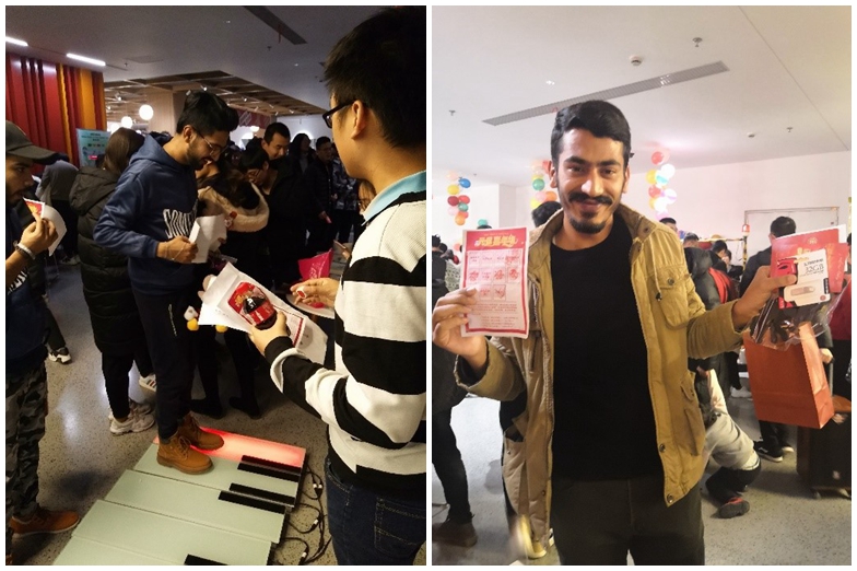 在这值得纪念的日子里,即使考试周也没有冲淡交大学子对新年的渴望,尽情享受着游戏的快乐,表达着对未来美好前景的期盼。杜一鸣同学说道:“学院准备的很充分,游戏准备的很好,我最喜欢火线冲击小游戏,有点难,但极富挑战性”。王世杰同学表示:“游园会形式多样,大家都很有创造力。”杨玥坪同学表示“火线冲击很刺激,弹钢琴比较好玩,人气比较高,趣味问答对校史知识普及很有帮助。”曲仝同学对划船器比赛表达了高度的赞同,“形式控制的很好,只划一分钟,既不会消耗大家过多的体力,又可以让大家体验到赛艇的快乐,我发现了好几个极具潜力的同学,希望最终能够吸收他们加入赛艇队。”