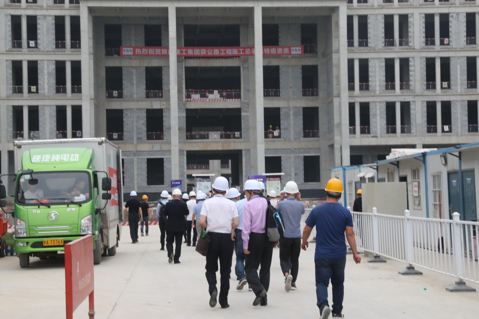 这次考察中国西部创新港的校友中,不仅有年逾八旬的“西迁”老教师,还有专程从海外赶回来的知名校友;不仅有国有大型企业老总,还有上市公司老总、有国内著名企业老总;不仅有国内高校的知名校友,还有一些初出茅庐的创业者,他们在电气校友会王建华会长、学院主要领导带领下,漫步创新港,抚今追昔,目不暇接,心潮澎湃。大家边走边聊,不时驻足拍照,并询问了解新校园建设的有关情况,喜悦之情溢于言表,无不流露出希望新校区早日落成的期许。施工现场参观结束后,校友团一行人员参观创新港规划沙盘,陕建集团指挥部有关同志向校友们介绍了中国西部科技创新港-智慧学镇的建设规划、功能板块、战略定位和目标任务等概况。
