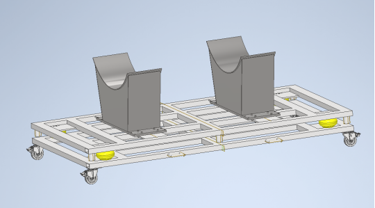 ④脉冲源支撑结构:根据采购方设计图纸要求,完成600KV高压注入源支撑底座机械加工。加工与600KV高压注入源相匹配马鞍支座外形尺寸为300×760×505,马鞍弧度R为505,基座为双层加减震设计尺寸为2300×1300带刹车万向轮,用于主体支撑。要求底座运输承载重量不低于5吨,静态承载重量不低于10吨且与脉冲源紧密贴合安装牢固可靠、高度可调(调节范围控制在200mm),具有良好的减震功能。底座满载质心高度≤1500mm,满载质心侧向偏离量≤90mm,调平精度≤1°,底座使用寿命≥10年。④见图2。