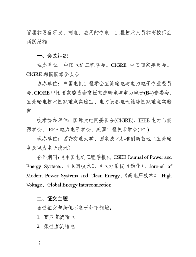 上一篇:中国电机工程学会直流输电与电力电子专业委员会关于2020年学术年会征文通知