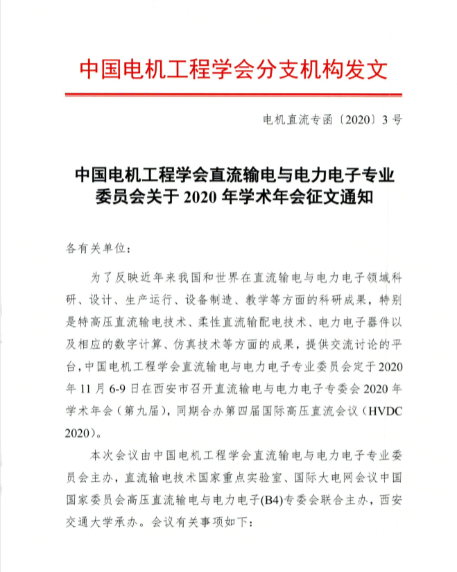 下一篇:中国电机工程学会关于第四届国际高压直流 会议(HVDC 2020)征文的通知