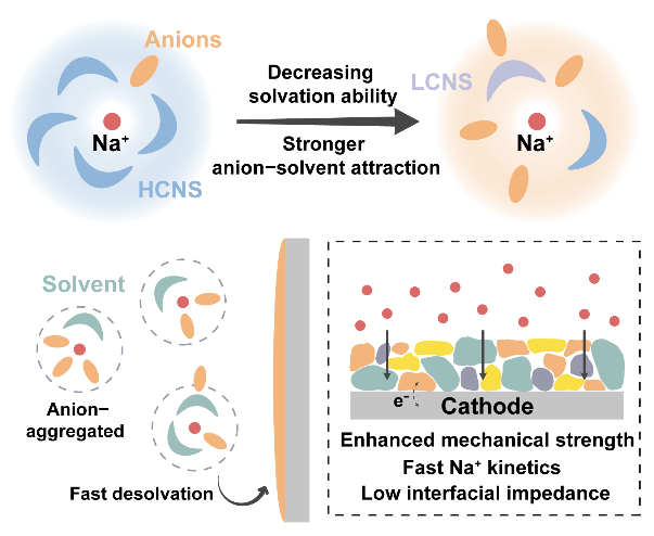 钠离子电池因其环境友好性、成本优势和良好的电化学兼容性,在大规模储能领域展现出广阔的应用前景。然而,钠离子电池的实际应用仍面临两大关键挑战:相对较低的能量密度和潜在的安全隐患。特别是在高电压工作条件下,电极/电解液界面会发生不可控的副反应,伴随电解液的氧化分解,导致界面稳定性急剧下降。这种不稳定的界面不仅加速了电解液的持续消耗,还会引发电极材料的结构退化,最终造成电池容量的快速衰减和循环寿命的急剧缩短。更为严峻的是,传统碳酸酯类有机电解液固有的挥发性、易燃性等缺陷,在热滥用、电滥用或机械滥用条件下极易引发热失控,导致燃烧甚至爆炸等严重安全事故。这些技术瓶颈已成为制约钠离子电池产业化发展的关键障碍。因此,开发具有高电压耐受性和本征阻燃特性的新型电解液体系,对于提升钠离子电池的安全性能和电化学稳定性具有重要意义与价值。