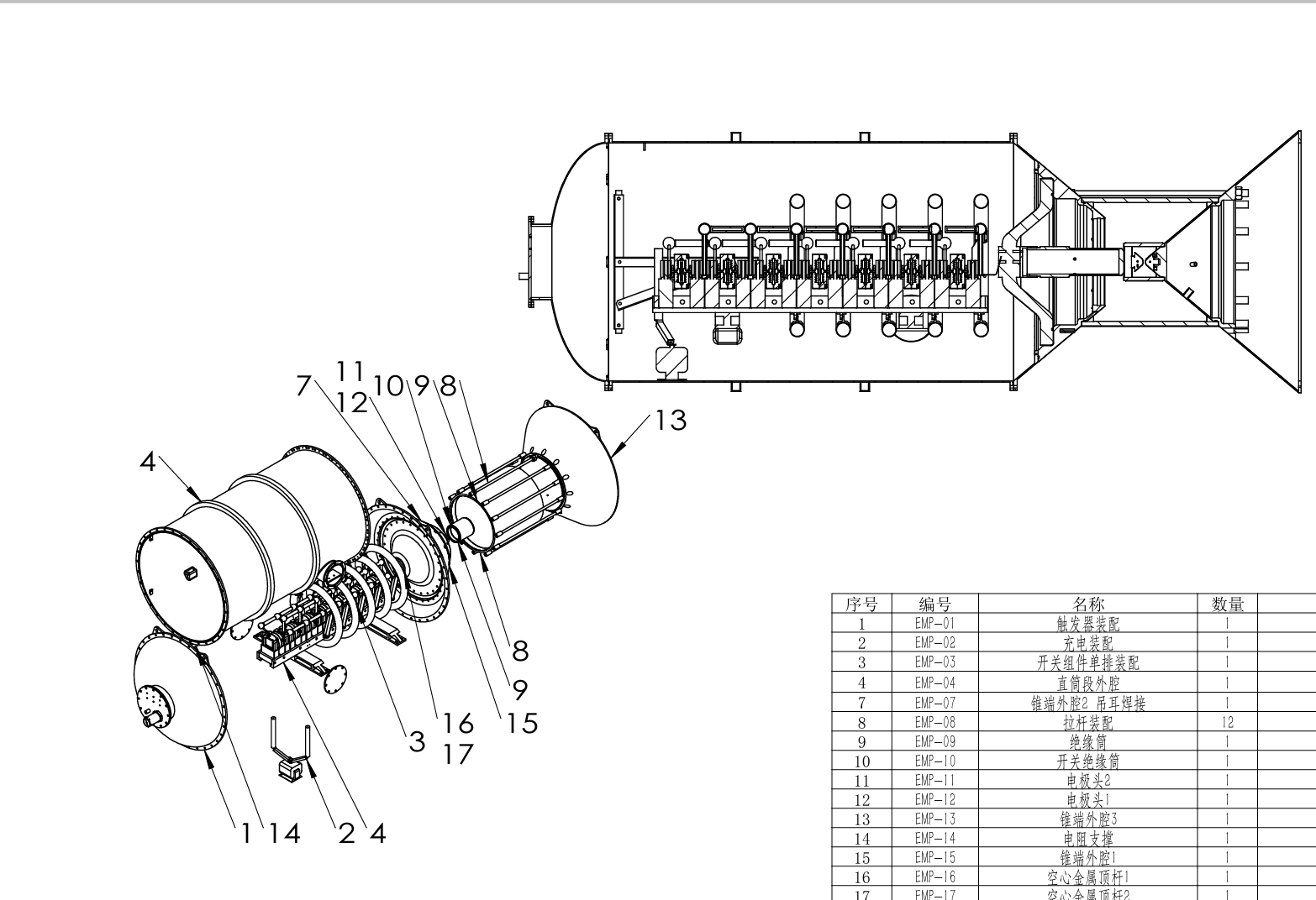 ⑧800kV高压脉冲源及其安装平台机械加工和测试项目包括辅助工装设计及加工,屏蔽环模具设计及加工。800kV高压脉冲源整机零件加工等内容,最终完成800kV高压脉冲源及其安装平台机械加工和测试件成品1套,并组装检漏合格安全运输到采购方指定地点(昆明)。