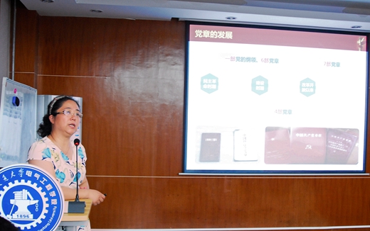 别朝红书记为党员们上了一堂题为《党章背后的故事》的党课,详细介绍了从民主革命时期到建设时期、再到改革开放时期,党章的发展历程和主要特点,重温了入党誓词,并分享了自己参加“两学一做”学习教育活动的感受和经验,要求各支部加强战斗堡垒作用,营造团结的氛围,服务全体师生,希望党员们结合“两学一做”学习教育活动,认真学习党章党规,在实际学习工作中真学真做,做到五个牢记:牢记入党誓词,始终践行诺言;牢记政治信仰,始终对党忠诚;牢记根本宗旨,始终为人民服务;牢记党的纪律,始终坚守规矩;牢记政治本色,始终积极工作。