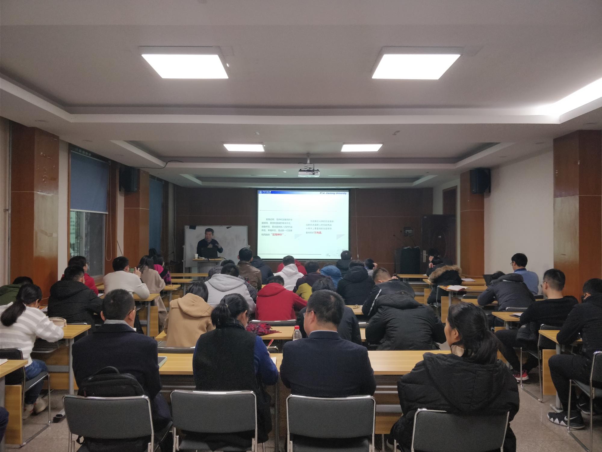 12月21日下午,电气学院分党委中心组组织专题学习报告会,特别邀请马克思主义学院教授王维国作题为“深入学习习近平在庆祝改革开放40周年大会上的重要讲话精神”专题报告。电气学院分党委中心组成员及入党积极分子参加学习,分党委书记成永红主持报告会。