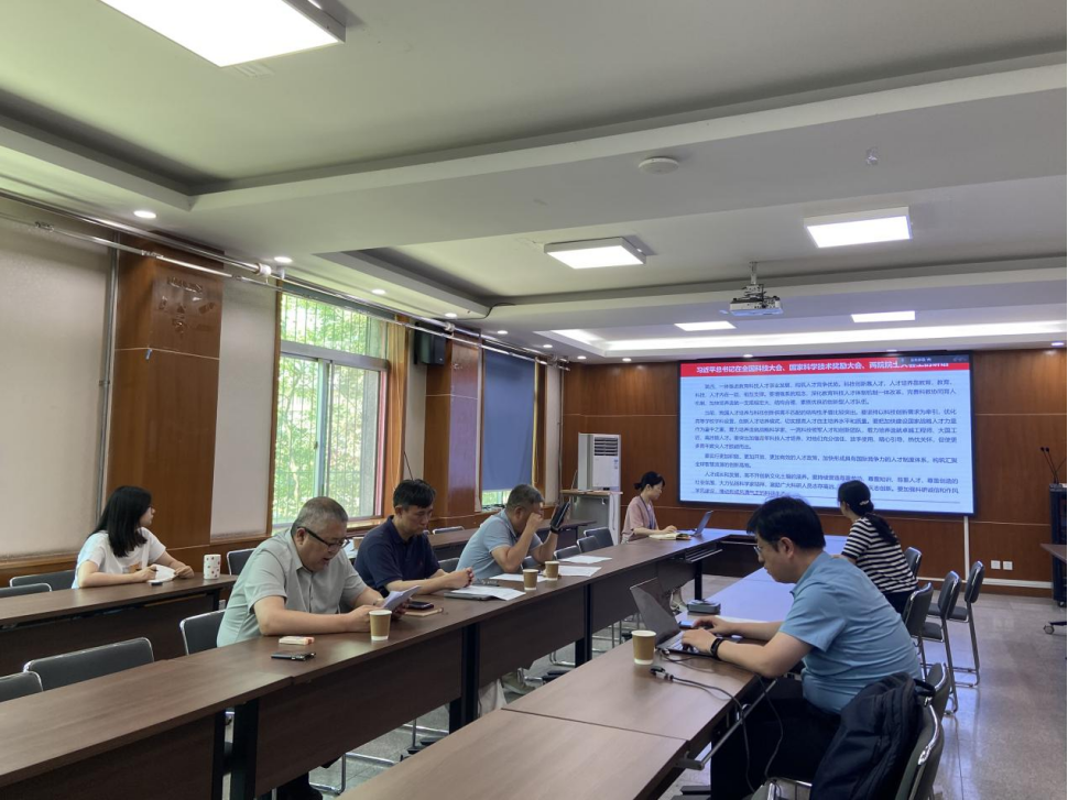 郝治国副院长领学并做重点发言,他以1个战略目标、5项重要成果、8条宝贵经验、5件基本要素、5点部署要求、3方寄语希望全面梳理总结了总书记重要讲话要点,并着重剖析了其中的5点部署要求。他表示,围绕2035年建成科技强国的战略目标,科研单位务必要进一步加强党对科技工作的集中统一领导,全面调动产学研各方面的积极性,形成共促关键核心技术攻关的工作格局。总书记讲话中多次强调以企业为主导的产教融合及开放合作,对于高校而言,深度产教融合一方面助力发展新质生产力,另一方面也为科教协同育人,培养规模宏大、结构合理、素质优良的一流创新人才提供了机制保障。科技创新不是闭门造车,我们必须进一步加强科技交流与合作,尤其是在错综复杂的国际环境下,我们更应该打开大门,在开放合作中寻找科技自立自强之路。