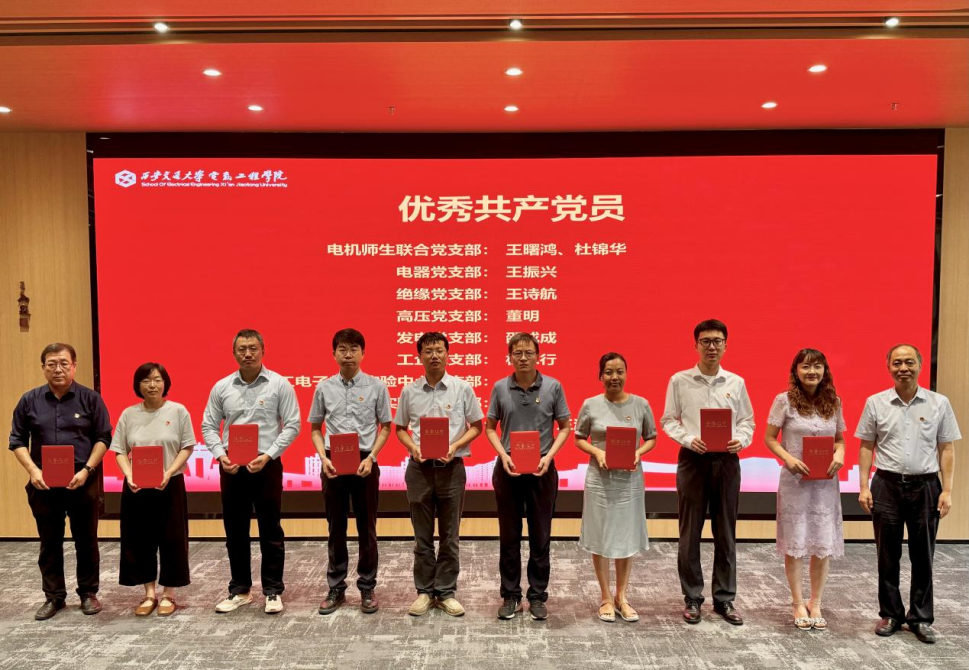 学院党委书记梁得亮总结讲话,向在过去一年中辛勤耕耘、无私奉献、取得优异成绩的优秀共产党员、优秀党务工作者以及先进党支部表示热烈的祝贺和诚挚的感谢。他表示,本次表彰大会既是对学院党建工作成果的集中展示,也是对全体党员不忘初心、牢记使命,勇于担当、积极作为精神风貌的深刻检阅。他强调,实现以高质量党建引领推进学院和电气学科高质量发展要全面发力,他要求全体党员要以此次大会为契机,进一步坚定理想信念,铸牢信仰之基,走好新时代赶考路,续写新征程上的辉煌篇章。