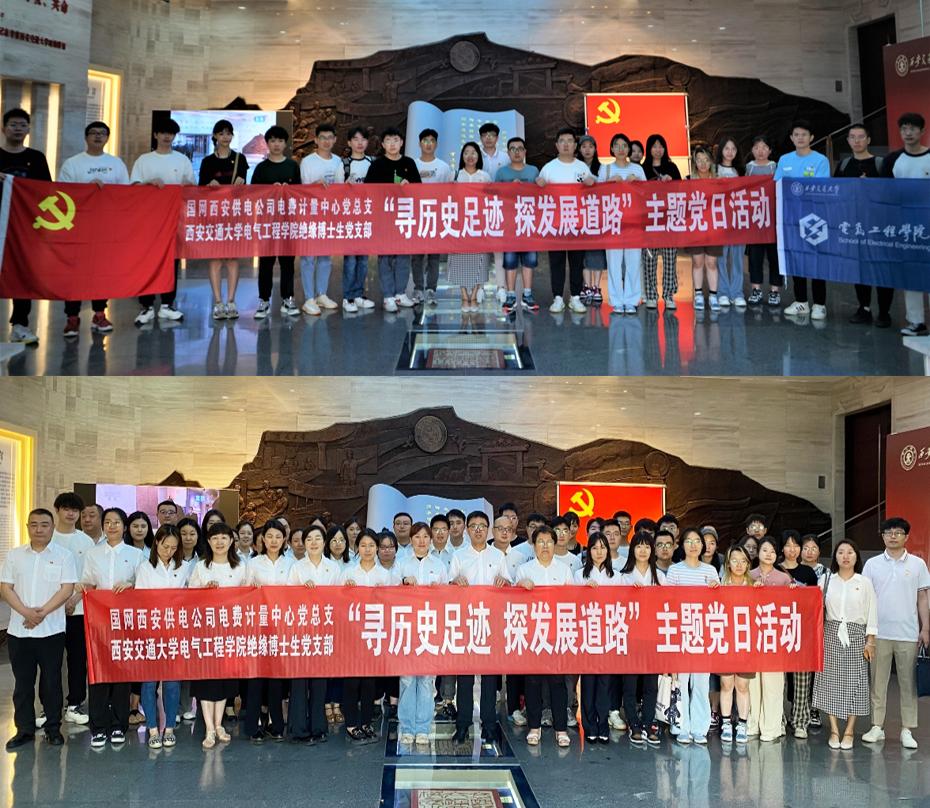 绝缘博士生党支部联合国网西安供电公司电费计量中心党总支共同开展“寻历史足迹,探发展道路”主题党日活动。本次活动以参观促学习,以交流促发展,深刻学习“西迁精神”,共同探讨电力行业发展。