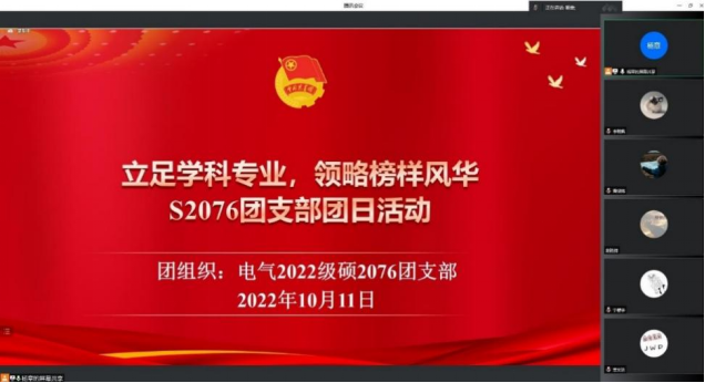 立足学科专业,领略榜样风华。为学习习近平总书记在中国共产主义青年团成立100周年大会上的讲话,不负习近平总书记对共青团员的殷切期望,硕2076团支部成组织支部成员共同学习榜样力量,学习国家电网青年榜样“最美奋斗者”孟晓鑫的事迹,增强电气青年对于电网职业的认同感和责任感。