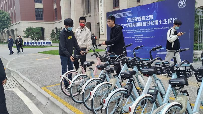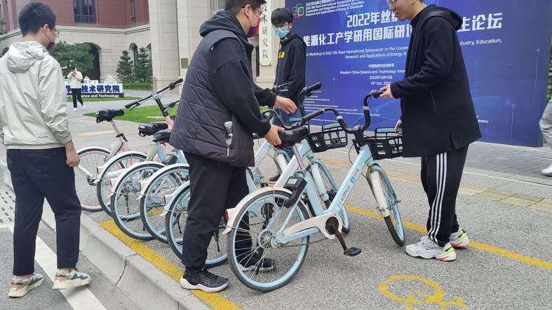 针对一号巨构正门两侧共享单车摆放凌乱无序现象,团支部开展“助力自行车摆放”活动,将停放无序的自行车抬起并放置在指定的停放区域中,确保共享单车停放整齐和规范。