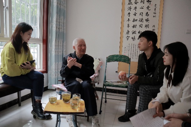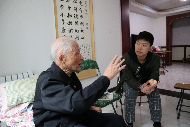 陈教授虽已九十二岁高龄,但依旧非常健谈。陈教授非常热情地招待同学们,并和同学们一一握手,表示看到这些年轻人来非常开心,自己特别愿意和年轻人聊天。