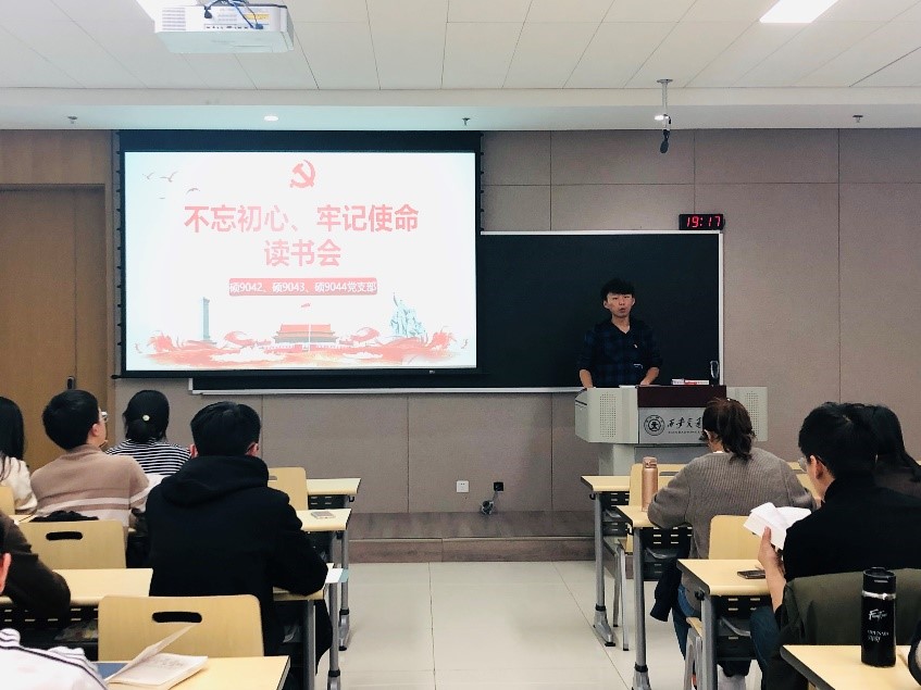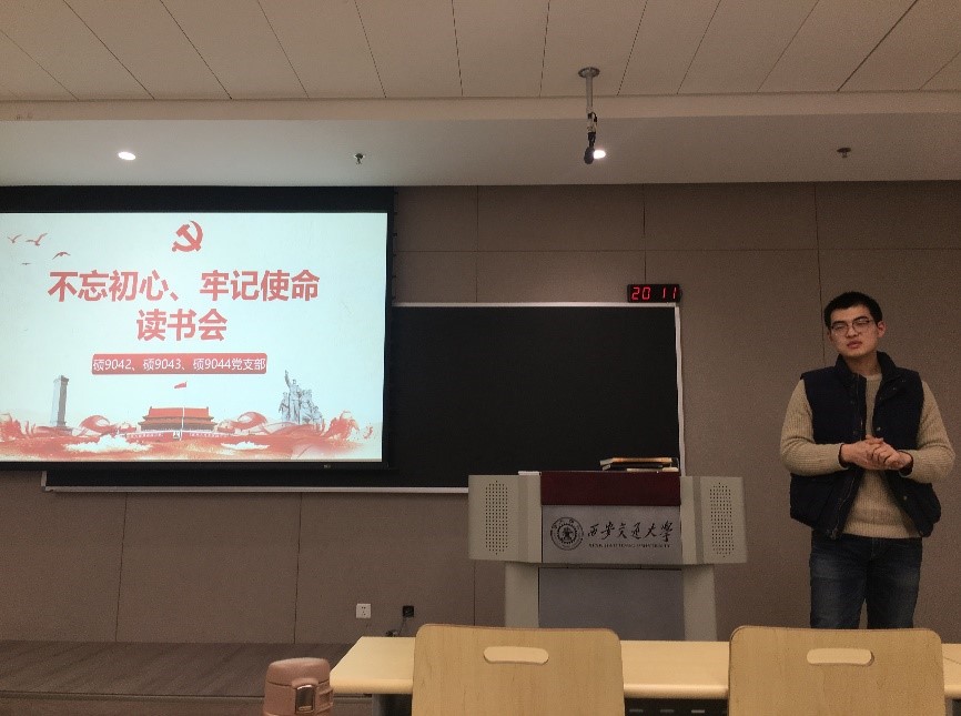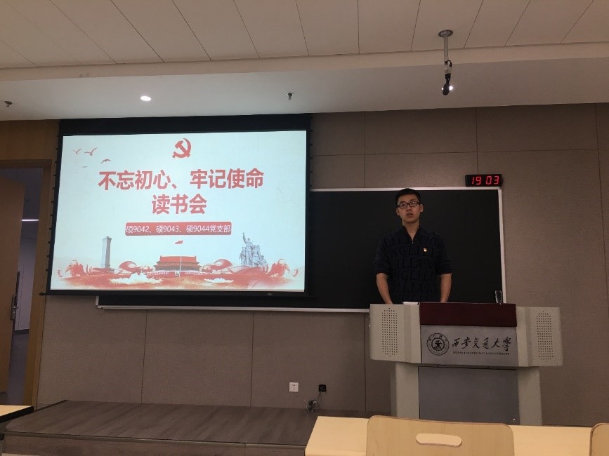 为深入落实“不忘初心、牢记使命”主题教育的学习要求,读原著,悟原理,不断提高党员的思想觉悟,增强党性修养,12月4日晚,电气学院硕9042、9043和9044班党支部在创新港联合开展 “不忘初心,牢记使命”读书会活动。各支部党员分享《习近平关于“不忘初心,牢记使命“论述摘编》相应章节的学习心得与体会。该活动由9044党支部书记谷宇豪同志主持。