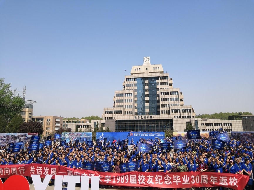 拍摄于4月6日89届校友返校当天在四大发明广场拍摄的。整张照片以钱学森图书馆为背景,主体是当天返校参加活动的1000多名89届的交大校友。从照片中可以看出,这些早已经成为各行各业精英的交大校友,满怀热情,充满活力,英姿飒爽,对母校充满感激和怀念。当年你们以交大为荣,现在交大以你们为傲。壮哉校友!