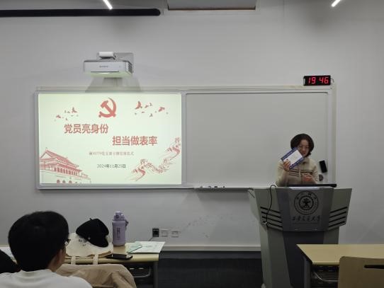 硕4079班围绕党的二十届三中全会精神中的重要议题展开党团支部组织生活。活动从党的二十届三中全会的主要内容出发,传达了会议精神,以学习分享的形式加强理论学习,并且随后进行“党员亮身份,担当做表率”活动。