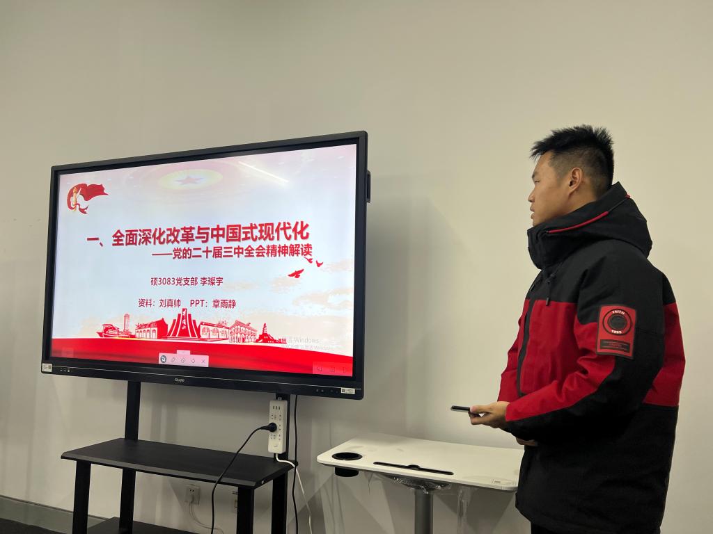 首先,李璨宇带领同学们学习了习近平总书记关于全面深化改革的一系列重要论述,要坚决维护党中央的集中统一领导这一核心力量,坚守以人民为中心的改革价值取向,坚定不移地走中国特色社会主义改革道路。以教育、科技、人才作为关键支撑,以改革创新驱动现代化,科学谋划,全面协调推进。最后,向同学们分享了新时代改革在经济、政治、文化等多个领域取得的辉煌成就,激发了同学们对改革成果的自豪感与使命感。