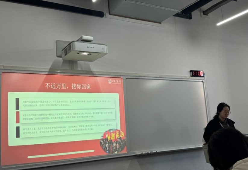 接下来,何香凝带领大家观看了电影《万里归途》。该片讲述了中国外交人员在海外救援任务中的勇敢与奉献精神,是一部充满正能量的红色题材电影。影片通过对中国外交人员在危难时刻如何紧急组织撤侨、勇敢执行使命的生动呈现,展现了国家与民族责任感,以及新时代青年党员应承担的使命。何香凝结合影片内容,特别强调了革命精神和英雄人物在新时代的传承。影片中的主人公面对险境毫不退缩,凭借坚定的信念和无畏的精神克服了种种困难,最终成功完成任务,充分体现了新时代党员的责任担当。