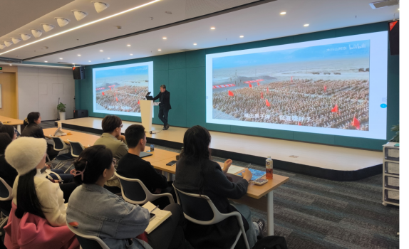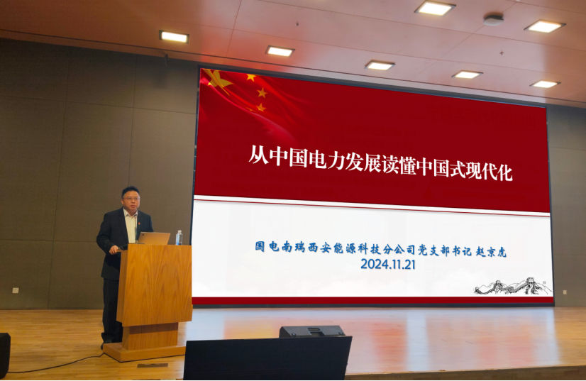国电南瑞西安能源科技分公司党支部书记赵京虎带来了《从中国电力发展读懂中国式现代化》主题党课,紧密结合国情与时代,深刻剖析了中国式现代化特色,涵盖共同富裕、文明协调、人与自然和谐共生等多重内涵。他阐释了新质生产力作为高质量发展的核心动力,回顾了中国电力从无到有、由弱变强的历程,彰显了中国电力事业的蓬勃生机与巨大潜力。以南瑞集团为例,赵书记鼓励鼓励同学们投身科研,以报国之志,在科研领域勇于探索、拼搏进取,为实现中国式现代化贡献力量,共同书写电力科技新篇章。