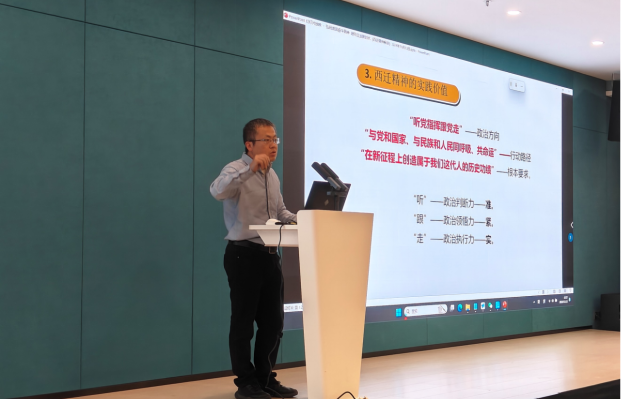 校史与大学文化研究中心研究员杨澜涛老师则以《党的意志和西迁精神》为题,从交大人的身份认同出发,回溯了西迁交大人无私奉献的崇高精神、筚路蓝缕的艰辛历程以及扎根西部的宏伟画卷,将“听党话、跟党走”的精神内核牢牢地镌刻在同学们心中。