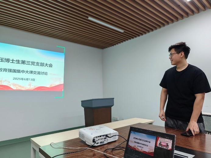 曾世胤同志分享道:“作为博士生党员,深刻认识到教育强国是民族复兴的重要支撑,高等教育肩负着培养拔尖创新人才的重任。面对时代召唤,将坚定理想信念,把科研追求融入国家发展大局,勇攀科技高峰,争做基础研究和技术攻关的生力军,用实际行动服务人民、奉献国家。”