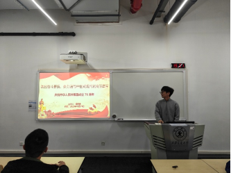 会议伊始,陈骏鑫同学带领全体同学回顾了新中国成立76年以来走过的光辉足迹,从新中国成立到改革开放再到中国式现代化,这些关键的历史节点是我们获得如今成就的坚实根基。从历史坐标看如今时代使命,让理论照进现实,陈骏鑫同学以电气专业学生的角度提出要在科研创新、服务同学等阵地践行个人使命,鼓舞同学们用自身奋斗为祖国前程贡献青春力量。