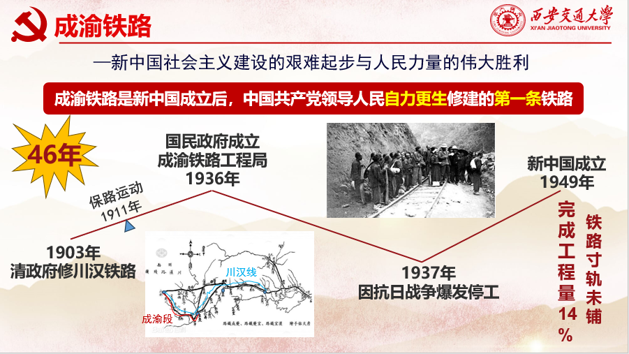 活动伊始,支部书记王昕以“以铁路飞跃观中国共产党与中国人民的75年征程”为题,进行了主题党课讲授。她从成渝铁路的建设讲起,详细阐述了新中国社会主义建设的艰难起步与人民力量的伟大胜利。成渝铁路作为新中国成立后第一条自主修建的铁路,不仅是社会主义建设的起点,更是人民力量的伟大胜利。王昕还介绍了中国高铁的发展,从引进技术到自主创新,再到走出国门,中国高铁已成为国家的一张亮丽名片。