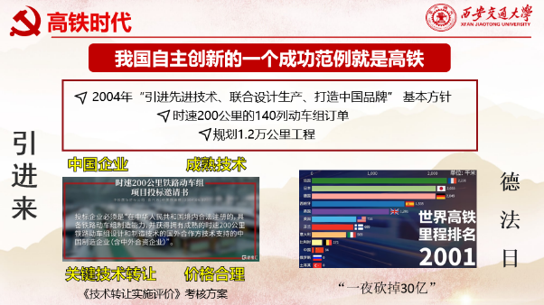 随后在高铁时代篇章中,王昕特别指出了自主创新的重要性。她提到,2004年中国确立了“引进先进技术、联合设计生产、打造中国品牌”的基本方针,通过引进、消化、吸收、再创新的过程,中国高铁实现了从追赶到领跑的跨越。
