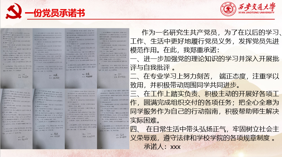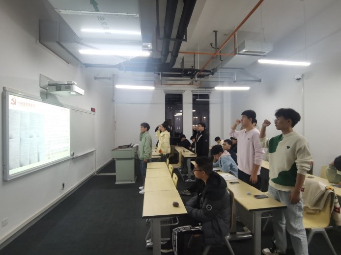 为了进一步了解承诺书的指导意义,并将承诺书内容落到实处。在会上,宋子豪带领支部全体党员举起右拳做出了庄严宣誓。本项活动旨在鼓励党员在学习和生活中发挥先锋模范作用,以实际行动践行党的宗旨。