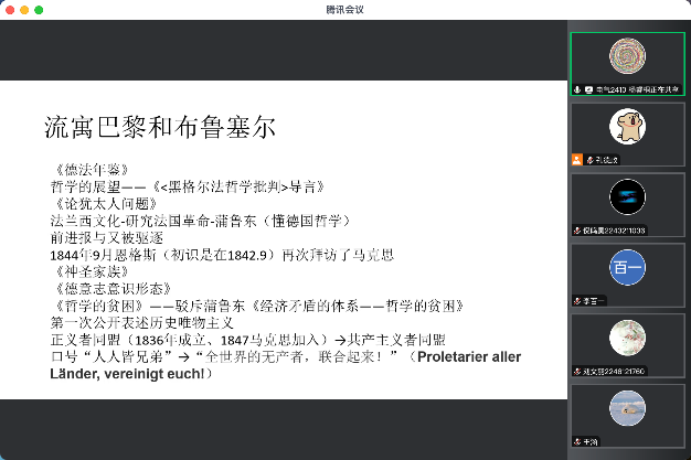 最后,杨睿桐同学分享了《共产党宣言》的核心内容以及青年马克思的经历。马克思作为历史上伟大的思想家,他的经历和思想为我们提供了深刻的启示,他写出了《共产党宣言》这一部影响深远的著作,阐述了社会发展的规律和历史的必然性。